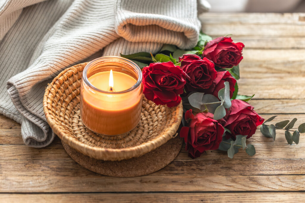 A warm and romantic atmosphere with our beautifully crafted candle and fresh red roses. The gentle glow of the candlelight paired with the timeless elegance of roses transforms any space into a cozy, intimate setting—perfect for special moments, thoughtful gifts, or simply treating yourself. Designed to bring comfort, beauty, and a touch of romance into your home, this charming combination makes every moment feel a little more special. Let the soft light, delicate fragrance, and natural beauty turn ordinary evenings into unforgettable memories